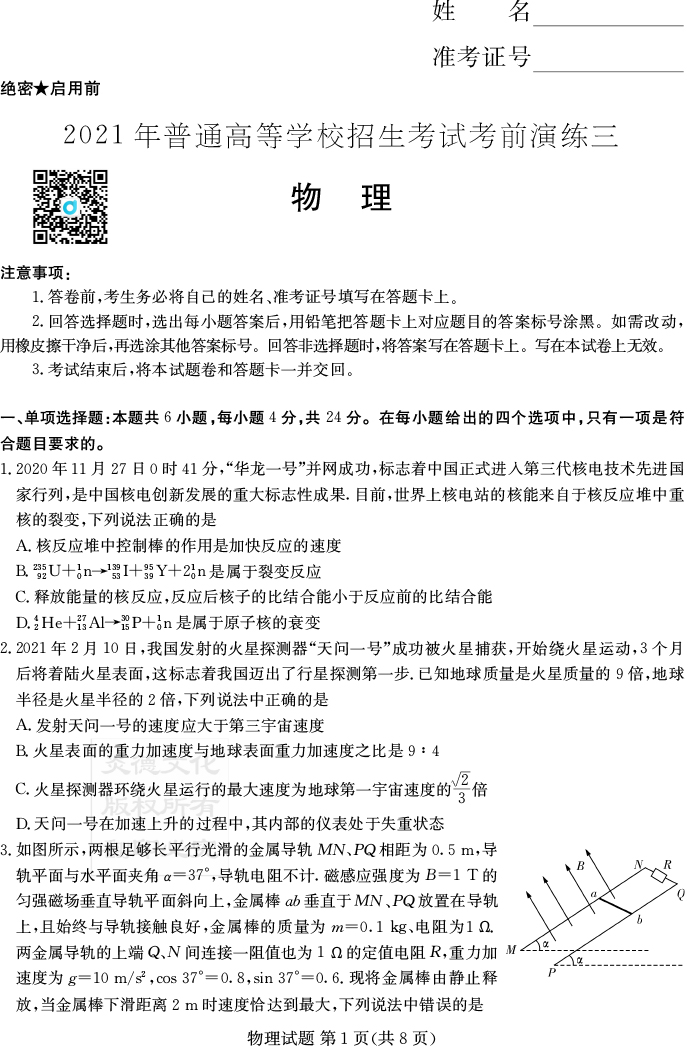 上一篇:【數(shù)學】2021年普通高等學校招生全國統(tǒng)一考試考前演練(三)