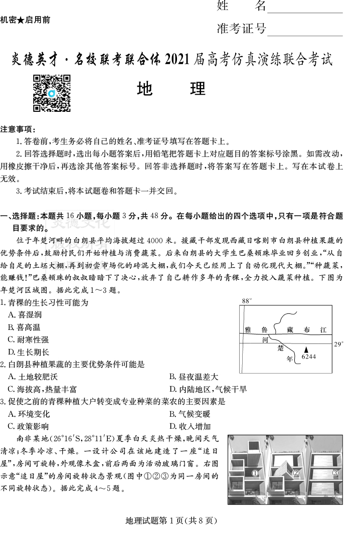 2026年高中寒假作業自主學習作業本·高三年級·地理