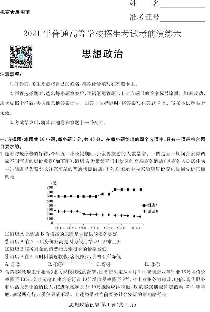 上一篇:【語文】2021年普通高等學校招生全國統一考試考前演練(六)