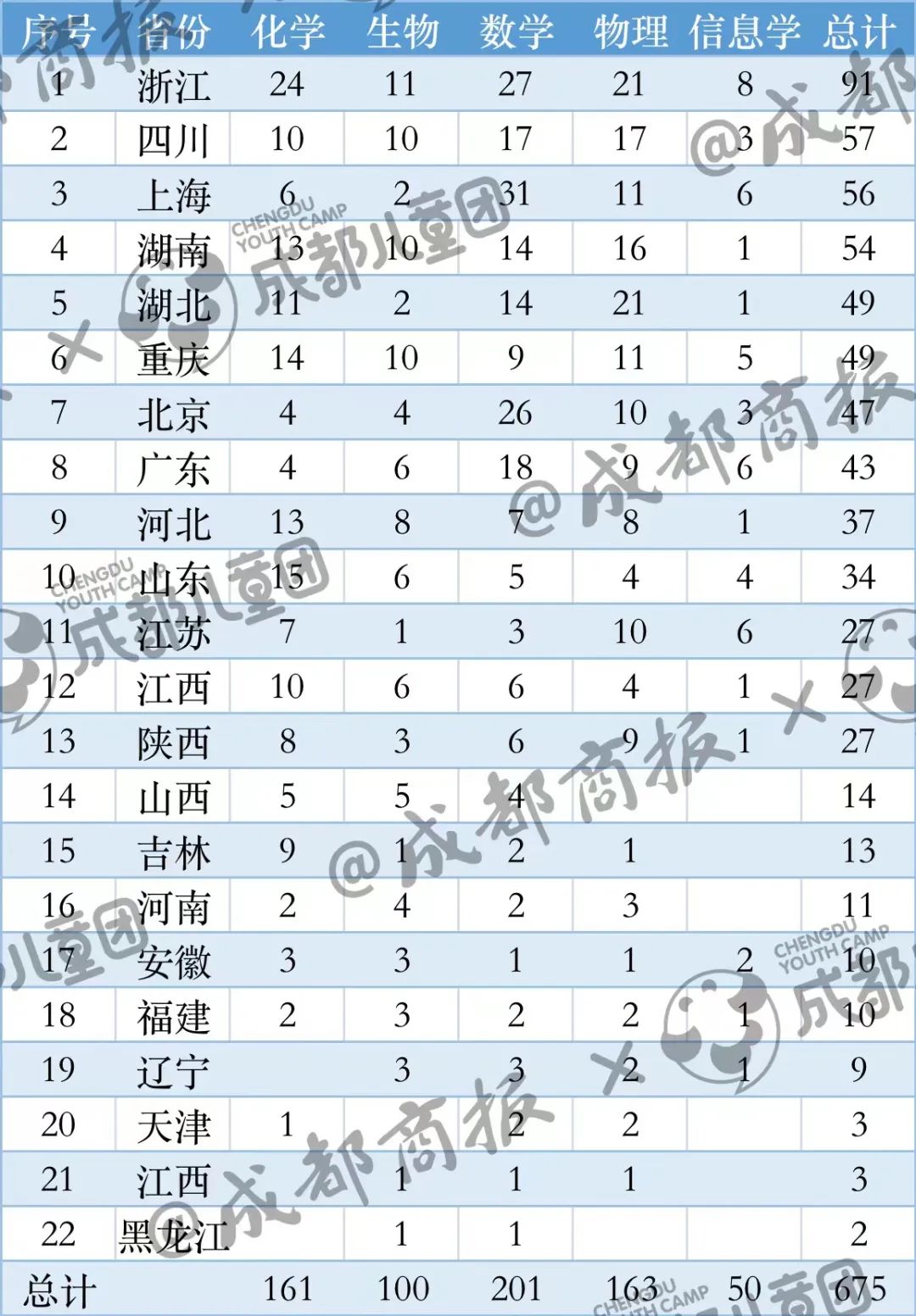 浙、湘、川、滬領跑2022五大學科競賽金牌